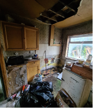 This three-bed house on the Greatwood and Horseclose estate had been empty for many years and was in very poor condition. There were holes in the roof, collapsed ceilings, rotten floorboards, crumbling plaster and a garden that resembled a jungle. The property itself is a ‘system build’ (Laing Easiform Type II) with the walls made from two thin sheets of precast concrete with a small cavity. This in itself presented challenges we haven’t faced before. However, the idea of the AEH REHAP model is to explore and test ways in which empty homes – which come in all shapes and sizes – can be brought into use as sustainable low-carbon homes, that are affordable both to rent and to keep warm. So, in partnership with North Yorkshire Council, the local community college, Leeds Beckett university, and the construction team, things forged ahead.